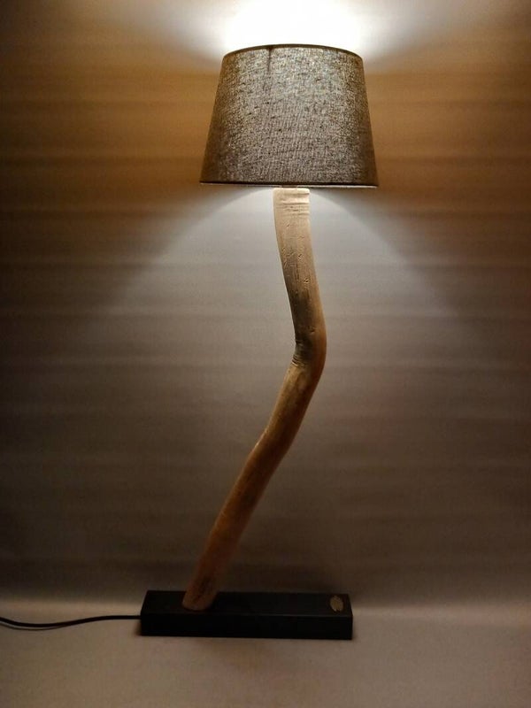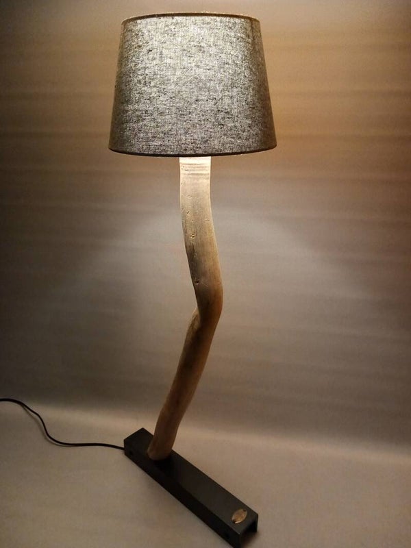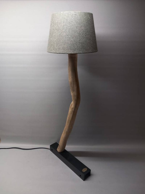 Ich verkaufe hier eine wunderschöne Handgemachte Treibholz Lampe mit einem grau-anthrazitfarbenem Textil Lampenschirm.