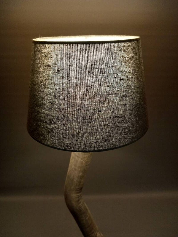 Treibholzlampe "Moonwalk" grau-anthrazitfarbener Textilschirm leichter filigraner Korpus und industrieeller rustikalen Flair einzigartig top