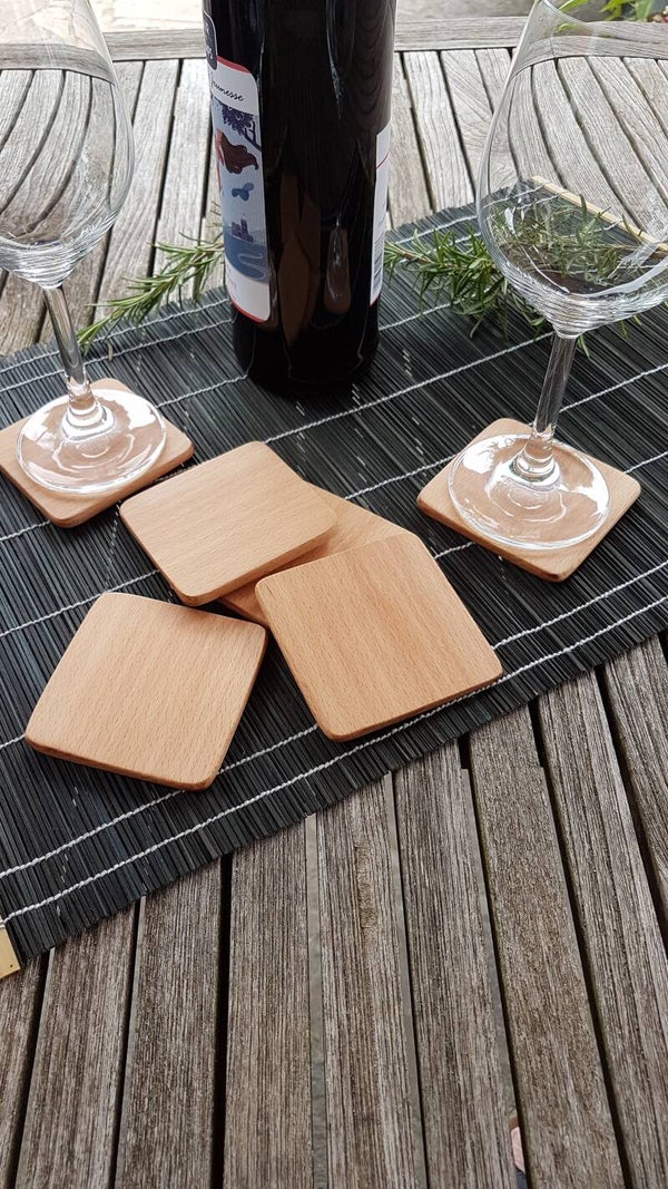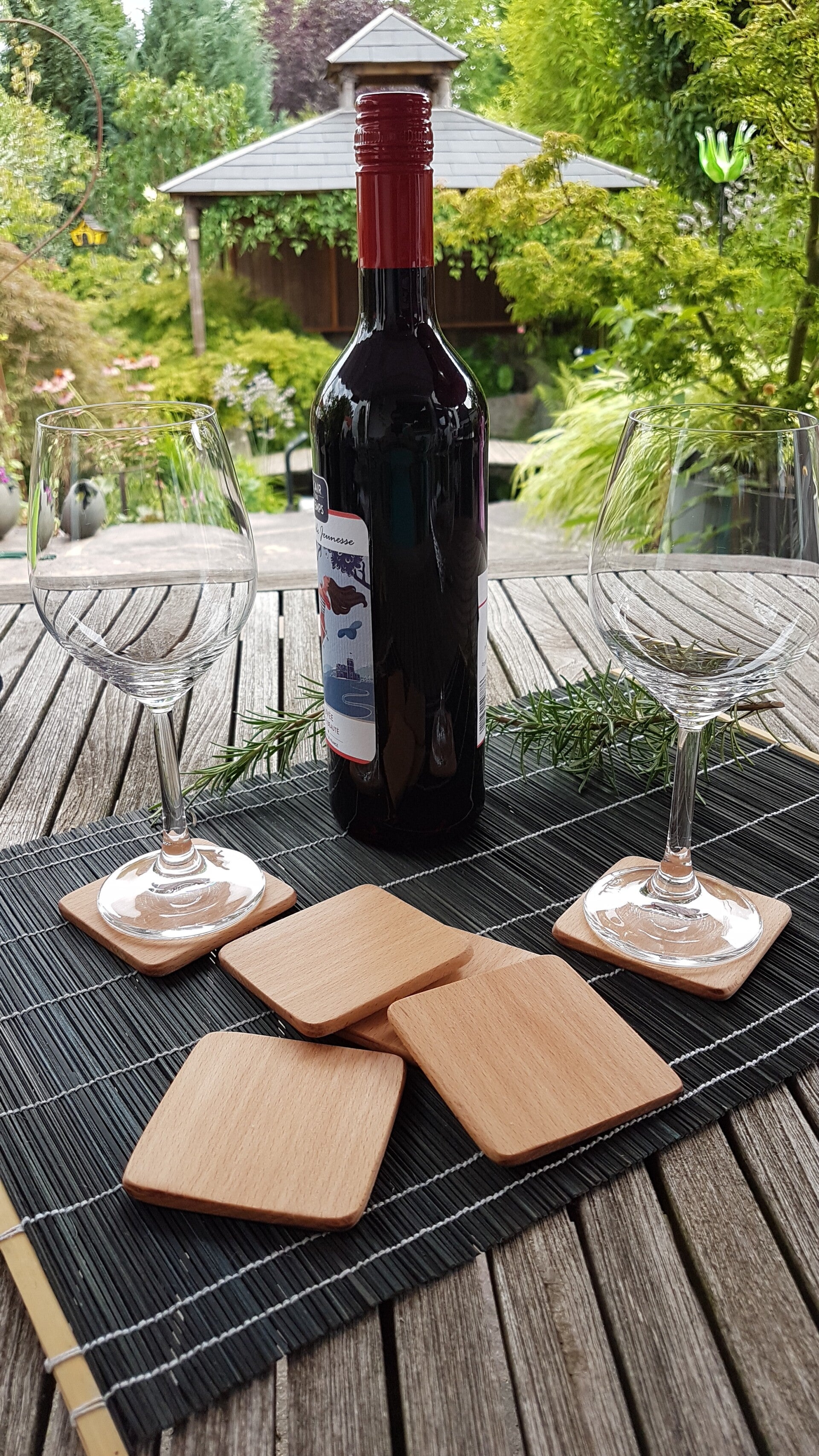 Wundervolles 6teiliges Set aus Hartholz Untersetzter für Wein oder Sektgläser und Tee oder Kaffetassen für einen gemütlichen Abend mit Gäste