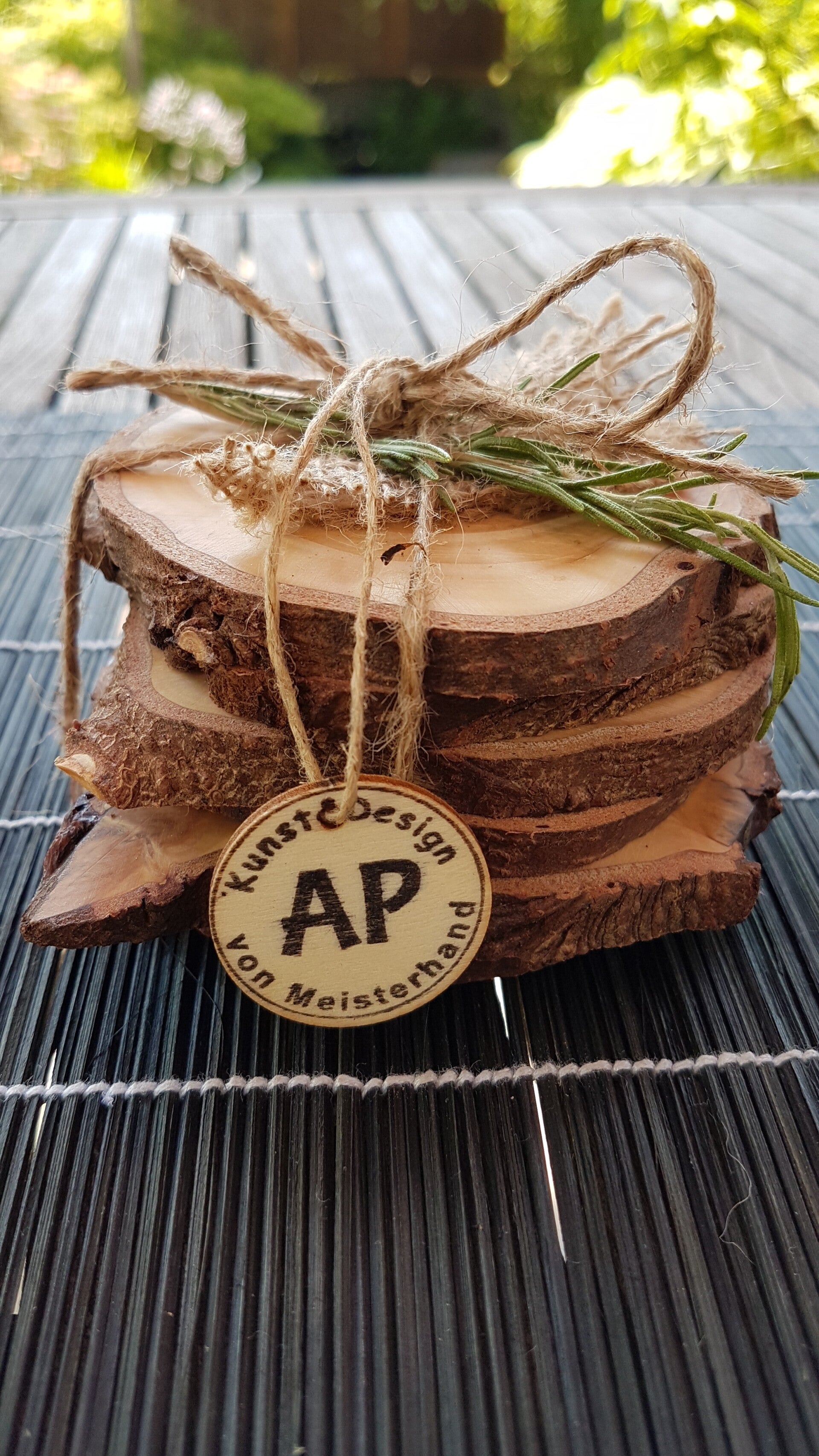 Ich biete hier ein einzigartiges von mir selbst in Handarbeit gefertigt Set aus 6 Lärchenholz Untersetzer zum Schutz ihres Tisches und für ein tolles Ambiente bei einem zauberhaften Abend mit netten Gästen an.