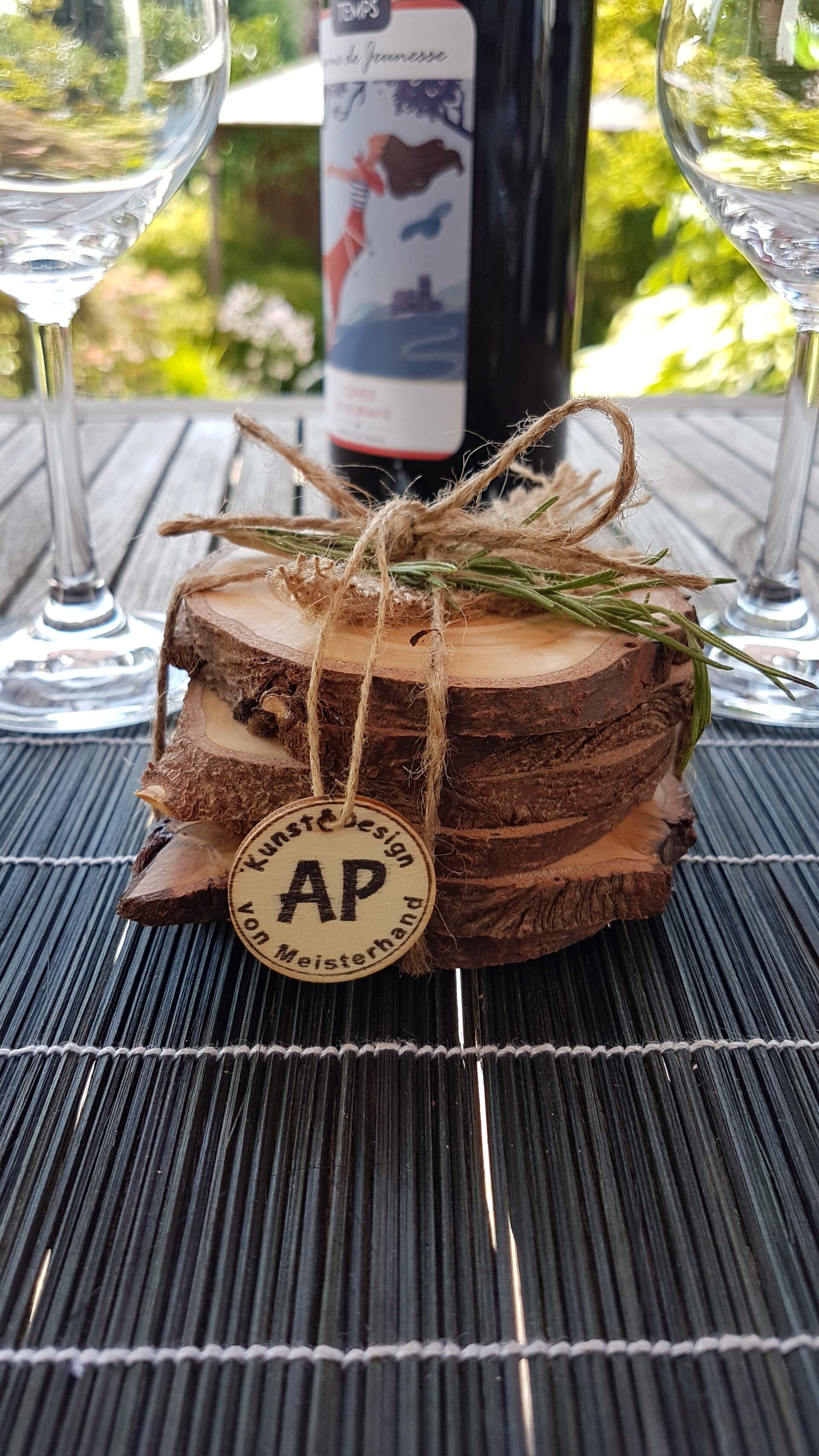 Die hier fotografierten Untersetzer sind nur Beispielbilder und können von der Form und Maserung leicht abweichen. (Die abgebildete Weinflasche und die Weingläser sind nicht im Umfang enthalten)