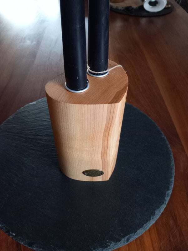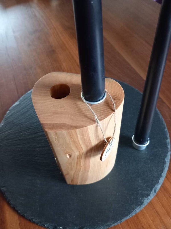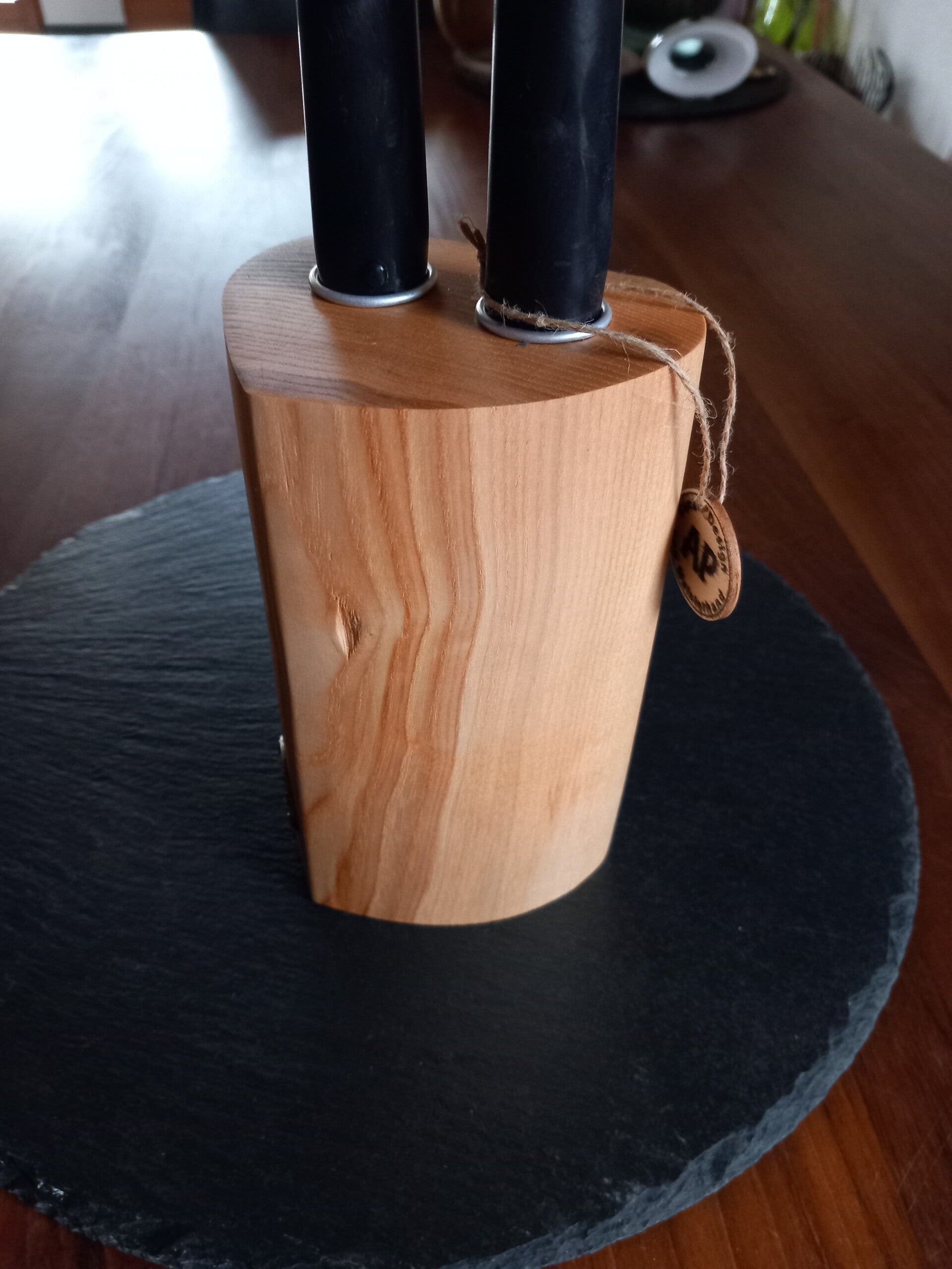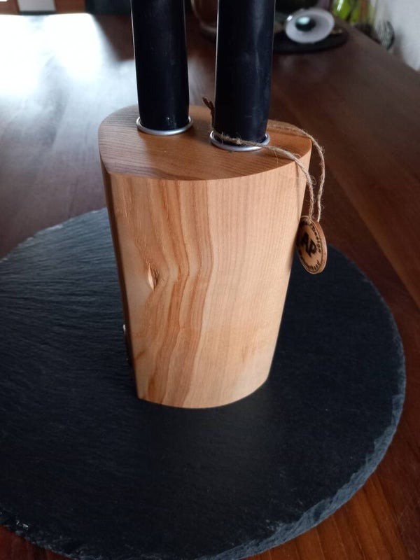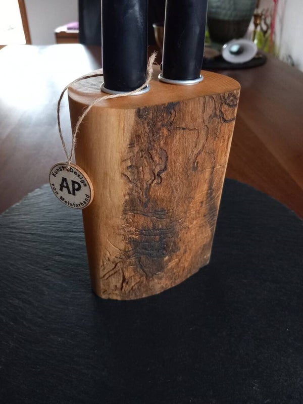 Wunderschöne Handmade Applikation Kerzenständer aus Naturhartholz für zwei Kerzen.
